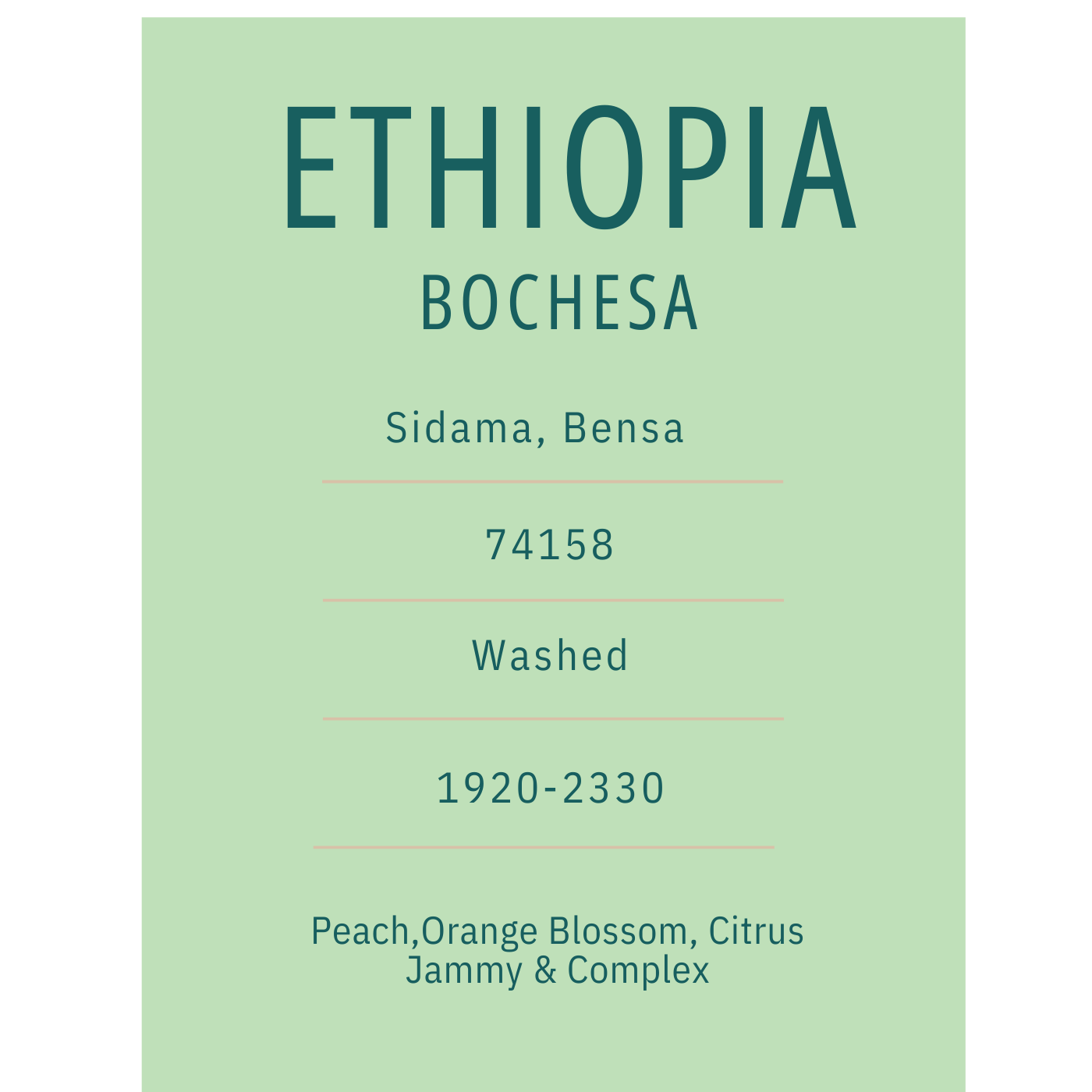 Sidama bölgesinin Arbegona yöresine bağlı Boreta köyü oldukça yüksek rakımda yer alıyor (2200-2300). Kahve meyvelerinin olgun- laşması, birçok bölgeye göre daha uzun sürdüğü için (hasat Kasım ayında değil Aralık ayında başlıyor) tat profili oldukça canlı,şarabımsı ve tatlı diyebiliriz. Temiz ve kompleks tatları hissedeceğiniz harika bir natürel Etiyopya ile karşınızdayız.